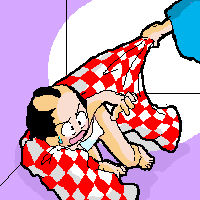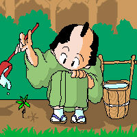 34: つ ら ら をお舐めになる若だんな。千歳飴でもエエけど手がベタベタになっちまう。
