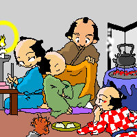 60:みっちり人数描きすぎ。 火鉢ぬくい。背中ぬくい。うつらうつらぐー